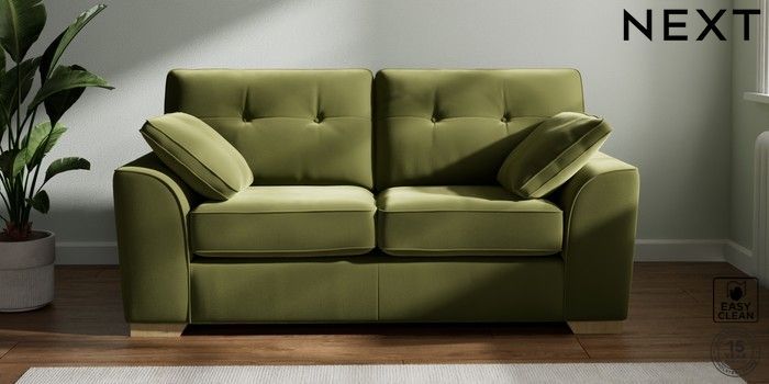 7.2.6 Buy Stamford Buttoned Back 2 Seater Sofa Plush Velvet Easy Clean Mid Olive Green Large Square Angle - Light from the Laura Ashley online shop Click here to use our website with more accessibility support, for example screen readers