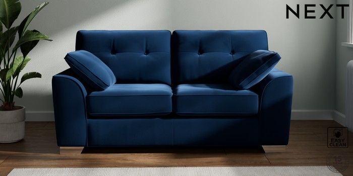 6.12.1 Buy Stamford Buttoned Back 2 Seater Sofa Plush Velvet Easy Clean Navy Blue Large Square Angle - Chrome Metal from the Laura Ashley online shop Click here to use our website with more accessibility support, for example screen readers