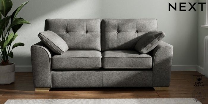 7.2.6 Buy Stamford Buttoned Back 2 Seater Sofa Tweedy Blend Easy Clean Dark Grey Large Square Angle - Light from the Laura Ashley online shop Click here to use our website with more accessibility support, for example screen readers