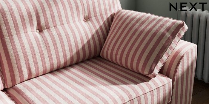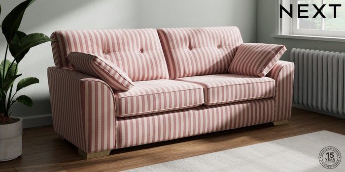 7.3.1 Buy Stamford Buttoned Back 3 Seater Sofa Bold Chenille Stripe Dark Pink Large Square Angle - Light from the Laura Ashley online shop Click here to use our website with more accessibility support, for example screen readers
