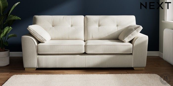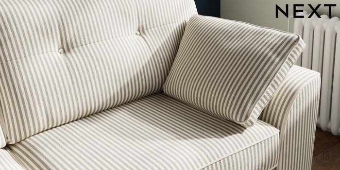 7.3.1 Buy Stamford Buttoned Back 3 Seater Sofa Chenille Stripe Moss Green Large Square Angle - Light from the Laura Ashley online shop Click here to use our website with more accessibility support, for example screen readers