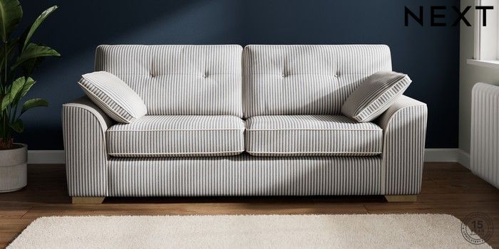 7.3.1 Buy Stamford Buttoned Back 3 Seater Sofa Chenille Stripe Slate Blue Large Square Angle - Light from the Laura Ashley online shop Click here to use our website with more accessibility support, for example screen readers
