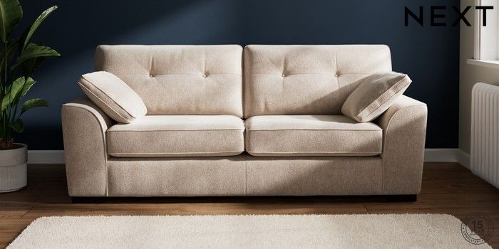 7.2.6 Buy Stamford Buttoned Back 3 Seater Sofa Cotswold Chenille Light Natural Large Square Angle - Dark from the Laura Ashley online shop Click here to use our website with more accessibility support, for example screen readers