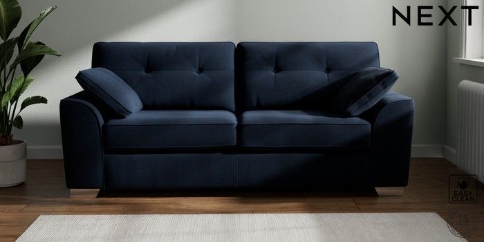 7.2.6 Buy Stamford Buttoned Back 3 Seater Sofa Fine Chenille Easy Clean Dark Navy Blue Large Square Angle - Chrome Metal from the Laura Ashley online shop Click here to use our website with more accessibility support, for example screen readers