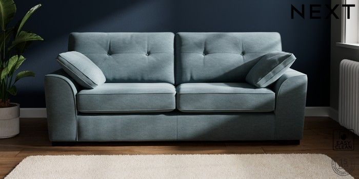 7.2.6 Buy Stamford Buttoned Back 3 Seater Sofa Fine Chenille Easy Clean Mid Blue Large Square Angle - Dark from the Laura Ashley online shop Click here to use our website with more accessibility support, for example screen readers