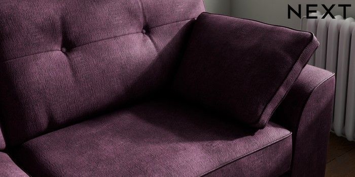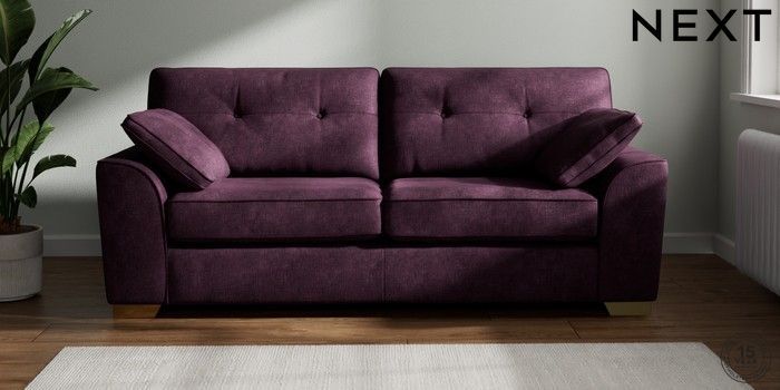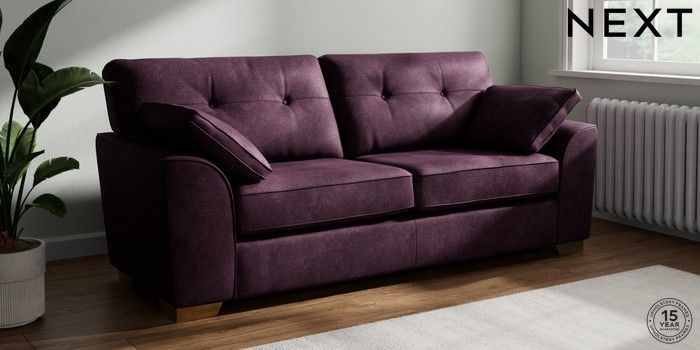 7.2.6 Buy Stamford Buttoned Back 3 Seater Sofa Plush Chenille Dark Plum Purple Large Square Angle - Brushed Brass from the Laura Ashley online shop Click here to use our website with more accessibility support, for example screen readers