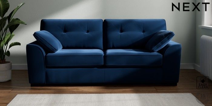 7.2.6 Buy Stamford Buttoned Back 3 Seater Sofa Plush Velvet Easy Clean Navy Blue Large Square Angle - Dark from the Laura Ashley online shop Click here to use our website with more accessibility support, for example screen readers