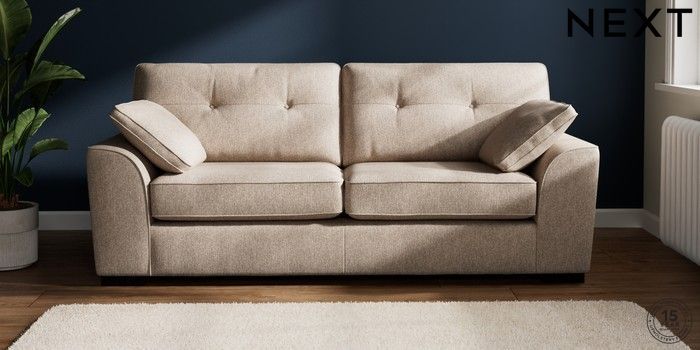 7.2.6 Buy Stamford Buttoned Back 3 Seater Sofa Tweedy Chenille Mid Natural Large Square Angle - Dark from the Laura Ashley online shop Click here to use our website with more accessibility support, for example screen readers