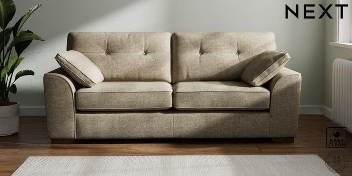 7.2.6 Buy Stamford Buttoned Back 3 Seater Sofa Woven Chenille Easy Clean Mid Natural Large Square Angle - Mid from the Laura Ashley online shop Click here to use our website with more accessibility support, for example screen readers