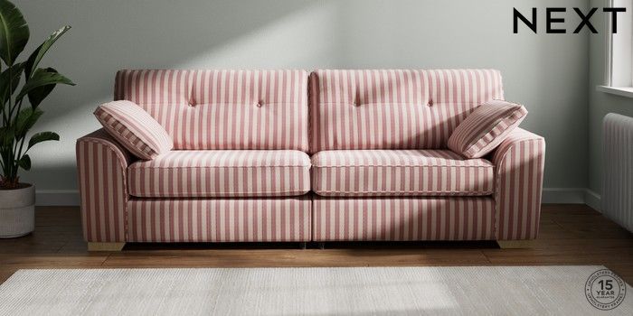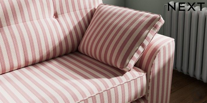 7.3.1 Buy Stamford Buttoned Back 4 Seater Sofa Bold Chenille Stripe Dark Pink Large Square Angle - Light from the Laura Ashley online shop Click here to use our website with more accessibility support, for example screen readers