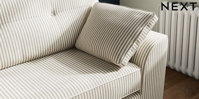 7.3.1 Buy Stamford Buttoned Back 4 Seater Sofa Chenille Stripe Moss Green Large Square Angle - Chrome Metal from the Laura Ashley online shop Click here to use our website with more accessibility support, for example screen readers