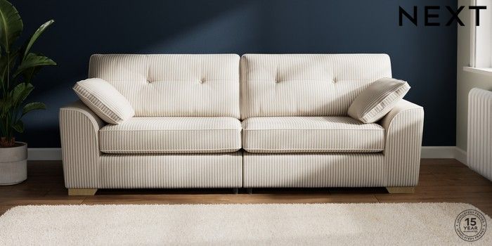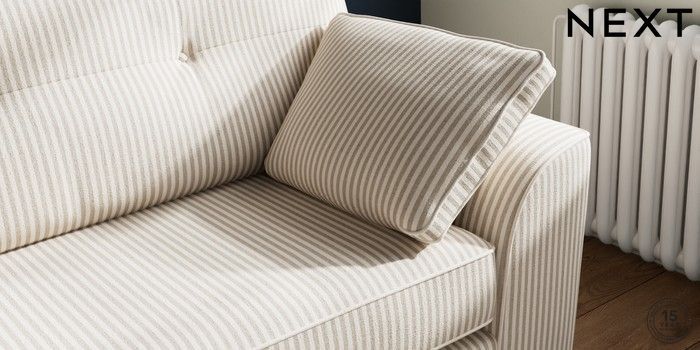 7.3.1 Buy Stamford Buttoned Back 4 Seater Sofa Chenille Stripe Natural Large Square Angle - Light from the Laura Ashley online shop Click here to use our website with more accessibility support, for example screen readers