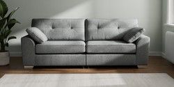 6.12.13 Buy Stamford Buttoned Back 4 Seater Sofa Chunky Boucle Easy Clean Mid Grey Large Square Angle - Chrome Metal from the Laura Ashley online shop Click here to use our website with more accessibility support, for example screen readers