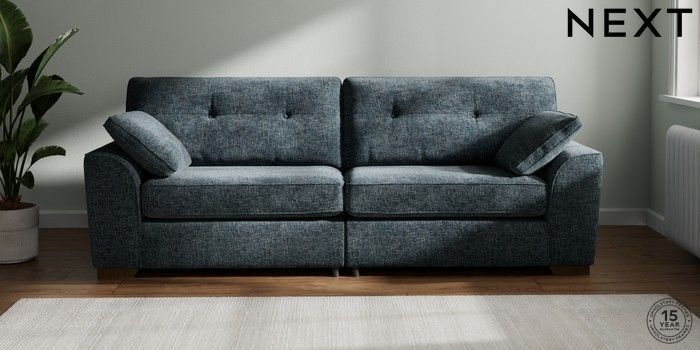 7.2.6 Buy Stamford Buttoned Back 4 Seater Sofa Chunky Chenille Dark Navy Blue Large Square Angle - Mid from the Laura Ashley online shop Click here to use our website with more accessibility support, for example screen readers