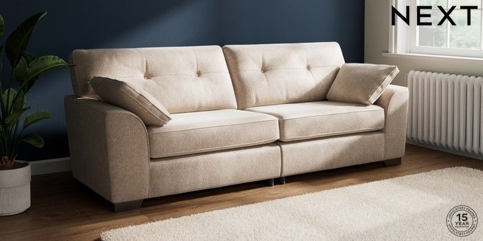 7.2.6 Buy Stamford Buttoned Back 4 Seater Sofa Cotswold Chenille Light Natural Large Square Angle - Gunmetal from the Laura Ashley online shop Click here to use our website with more accessibility support, for example screen readers