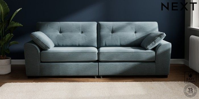 7.2.6 Buy Stamford Buttoned Back 4 Seater Sofa Fine Chenille Easy Clean Mid Blue Large Square Angle - Dark from the Laura Ashley online shop Click here to use our website with more accessibility support, for example screen readers