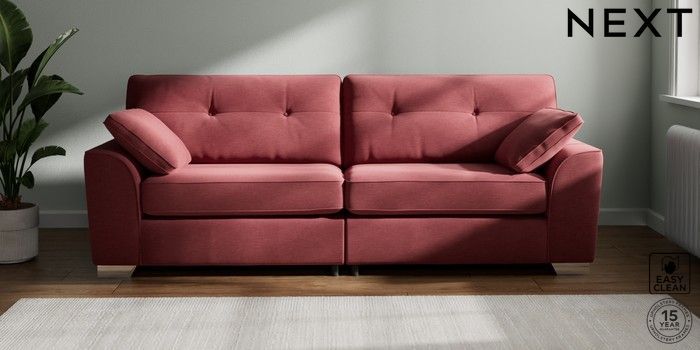 7.2.6 Buy Stamford Buttoned Back 4 Seater Sofa Fine Chenille Easy Clean Mid Pink Large Square Angle - Chrome Metal from the Laura Ashley online shop Click here to use our website with more accessibility support, for example screen readers