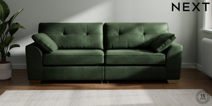 7.2.6 Buy Stamford Buttoned Back 4 Seater Sofa Luxe Chenille Dark Green Large Square Angle - Brushed Brass from the Laura Ashley online shop Click here to use our website with more accessibility support, for example screen readers