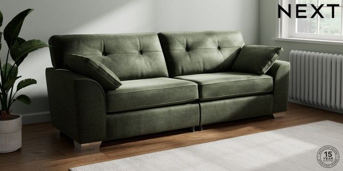 7.2.6 Buy Stamford Buttoned Back 4 Seater Sofa Luxe Chenille Mid Green Large Square Angle - Chrome Metal from the Laura Ashley online shop Click here to use our website with more accessibility support, for example screen readers
