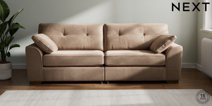 7.2.6 Buy Stamford Buttoned Back 4 Seater Sofa Luxe Chenille Mid Natural Large Square Angle - Mid from the Laura Ashley online shop Click here to use our website with more accessibility support, for example screen readers