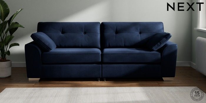 7.2.6 Buy Stamford Buttoned Back 4 Seater Sofa Luxe Chenille Navy Blue Large Square Angle - Chrome Metal from the Laura Ashley online shop Click here to use our website with more accessibility support, for example screen readers