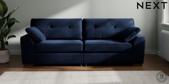 7.2.6 Buy Stamford Buttoned Back 4 Seater Sofa Luxe Chenille Navy Blue Large Square Angle - Mid from the Laura Ashley online shop Click here to use our website with more accessibility support, for example screen readers