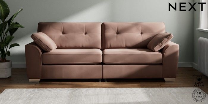 7.2.6 Buy Stamford Buttoned Back 4 Seater Sofa Plush Velvet Easy Clean Mid Natural Large Square Angle - Chrome Metal from the Laura Ashley online shop Click here to use our website with more accessibility support, for example screen readers