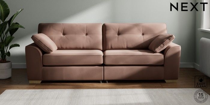 7.2.6 Buy Stamford Buttoned Back 4 Seater Sofa Plush Velvet Easy Clean Mid Natural Large Square Angle - Light from the Laura Ashley online shop Click here to use our website with more accessibility support, for example screen readers