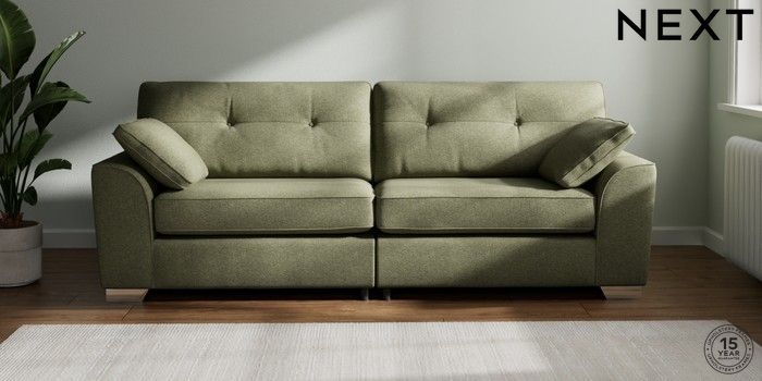 7.2.6 Buy Stamford Buttoned Back 4 Seater Sofa Tweedy Chenille Mid Moss Green Large Square Angle - Chrome Metal from the Laura Ashley online shop Click here to use our website with more accessibility support, for example screen readers