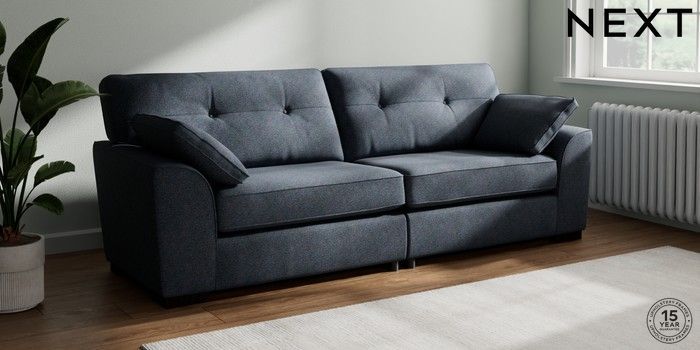 7.2.6 Buy Stamford Buttoned Back 4 Seater Sofa Tweedy Chenille Navy Blue Large Square Angle - Dark from the Laura Ashley online shop Click here to use our website with more accessibility support, for example screen readers