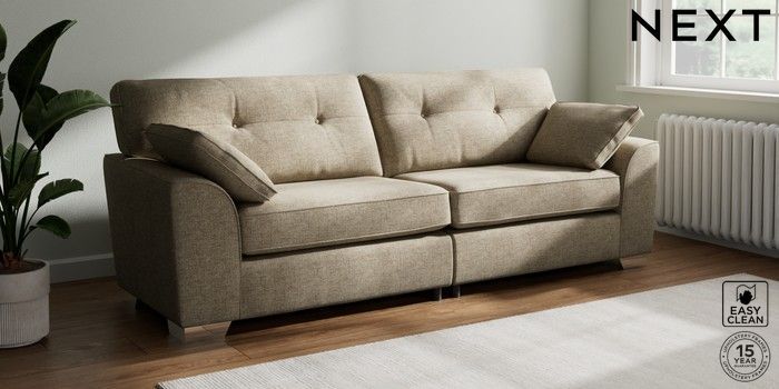 7.2.6 Buy Stamford Buttoned Back 4 Seater Sofa Woven Chenille Easy Clean Mid Natural Large Square Angle - Chrome Metal from the Laura Ashley online shop Click here to use our website with more accessibility support, for example screen readers