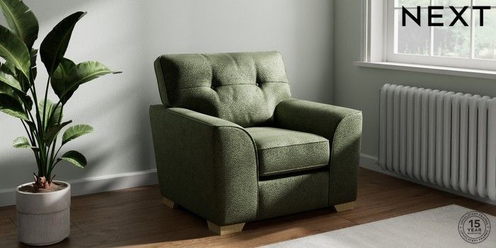 7.2.6 Buy Stamford Buttoned Back Armchair Boucle Chenille Dark Moss Green Square Angle - Light from the Laura Ashley online shop Click here to use our website with more accessibility support, for example screen readers