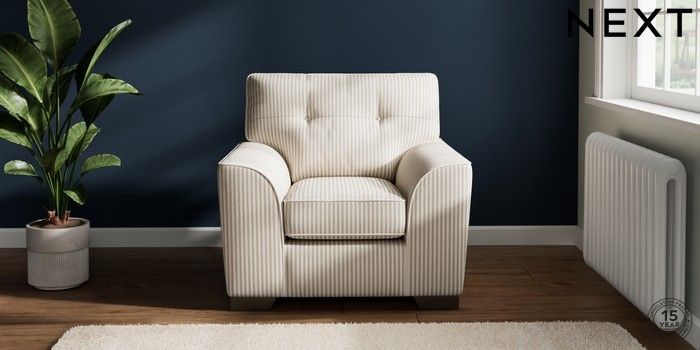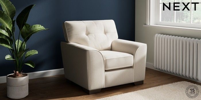 7.3.1 Buy Stamford Buttoned Back Armchair Chenille Stripe Natural Square Angle - Gunmetal from the Laura Ashley online shop Click here to use our website with more accessibility support, for example screen readers