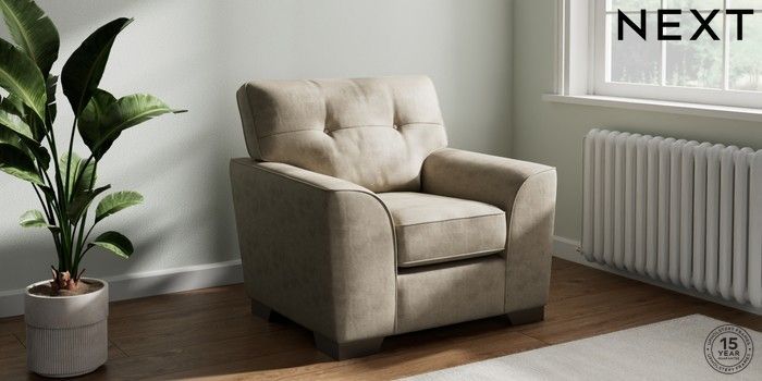 7.3.1 Buy Stamford Buttoned Back Armchair Monza Faux Leather Easy Clean Mink Brown Square Angle - Gunmetal from the Laura Ashley online shop