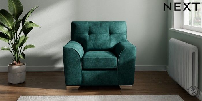 7.2.6 Buy Stamford Buttoned Back Armchair Plush Chenille Dark Teal Green Square Angle - Chrome Metal from the Laura Ashley online shop Click here to use our website with more accessibility support, for example screen readers