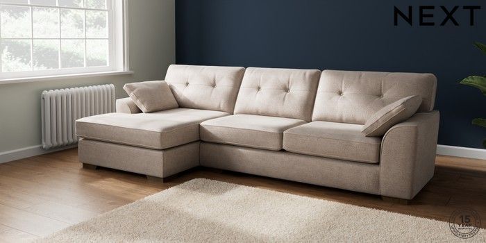 7.2.10 Buy Stamford Buttoned Back Large Sofa Chaise - Left Hand Boucle Chenille Light Natural Large Square Angle - Mid from the Laura Ashley online shop Click here to use our website with more accessibility support, for example screen readers