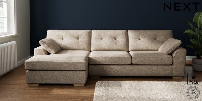 7.2.10 Buy Stamford Buttoned Back Large Sofa Chaise - Left Hand Chunky Boucle Easy Clean Mid Natural Large Square Angle - Light from the Laura Ashley online shop Click here to use our website with more accessibility support, for example screen readers