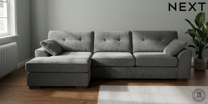 7.2.10 Buy Stamford Buttoned Back Large Sofa Chaise - Left Hand Chunky Chenille Dark Grey Large Square Angle - Mid from the Laura Ashley online shop Click here to use our website with more accessibility support, for example screen readers