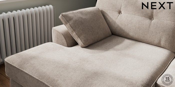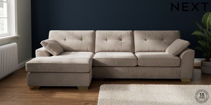 7.2.10 Buy Stamford Buttoned Back Large Sofa Chaise - Left Hand Chunky Chenille Light Dove Large Square Angle - Brushed Brass from the Laura Ashley online shop Click here to use our website with more accessibility support, for example screen readers
