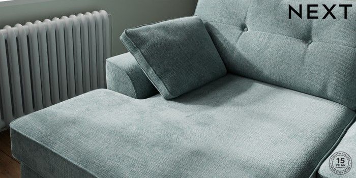 7.2.10 Buy Stamford Buttoned Back Large Sofa Chaise - Left Hand Chunky Chenille Light Teal Green Large Square Angle - Light from the Laura Ashley online shop Click here to use our website with more accessibility support, for example screen readers