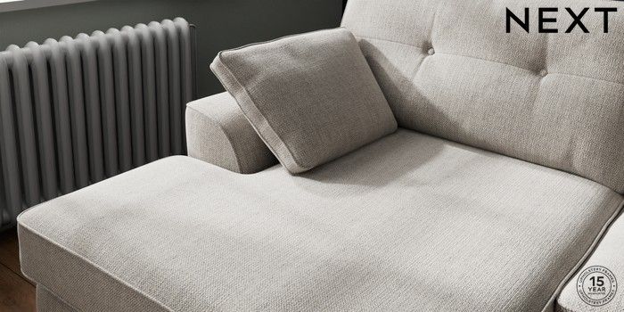 7.2.10 Buy Stamford Buttoned Back Large Sofa Chaise - Left Hand Chunky Weave Dove Grey Large Square Angle - Light from the Laura Ashley online shop Click here to use our website with more accessibility support, for example screen readers