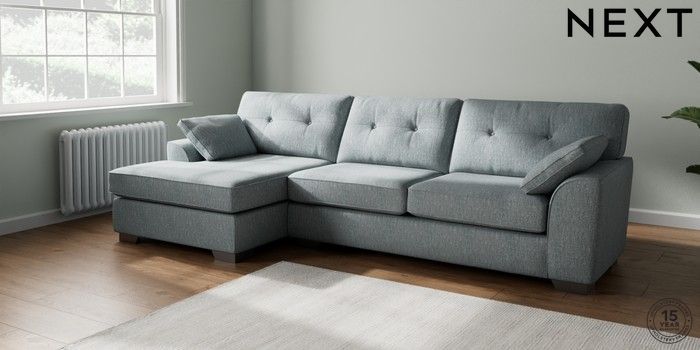 7.2.6 Buy Stamford Buttoned Back Large Sofa Chaise - Left Hand Chunky Weave Mid Blue Large Square Angle - Gunmetal from the Laura Ashley online shop Click here to use our website with more accessibility support, for example screen readers