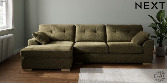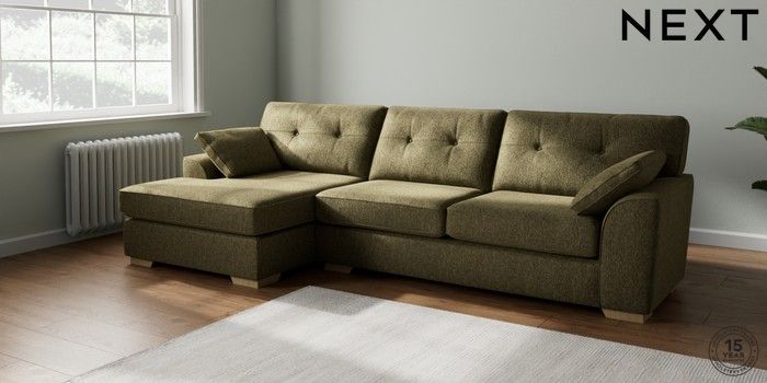 7.2.10 Buy Stamford Buttoned Back Large Sofa Chaise - Left Hand Cotswold Chenille Dark Green Large Square Angle - Light from the Laura Ashley online shop Click here to use our website with more accessibility support, for example screen readers