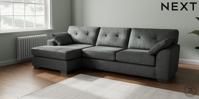 7.2.6 Buy Stamford Buttoned Back Large Sofa Chaise - Left Hand Cotswold Chenille Dark Grey Large Square Angle - Gunmetal from the Laura Ashley online shop Click here to use our website with more accessibility support, for example screen readers