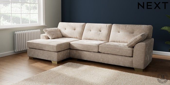 7.2.6 Buy Stamford Buttoned Back Large Sofa Chaise - Left Hand Distressed Velour Mid Natural Large Square Angle - Brushed Brass from the Laura Ashley online shop Click here to use our website with more accessibility support, for example screen readers