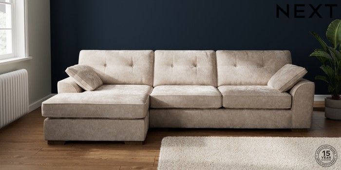 7.2.10 Buy Stamford Buttoned Back Large Sofa Chaise - Left Hand Distressed Velour Mid Natural Large Square Angle - Mid from the Laura Ashley online shop Click here to use our website with more accessibility support, for example screen readers