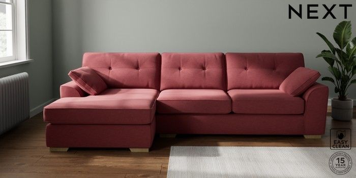 7.2.10 Buy Stamford Buttoned Back Large Sofa Chaise - Left Hand Fine Chenille Easy Clean Mid Pink Large Square Angle - Light from the Laura Ashley online shop Click here to use our website with more accessibility support, for example screen readers