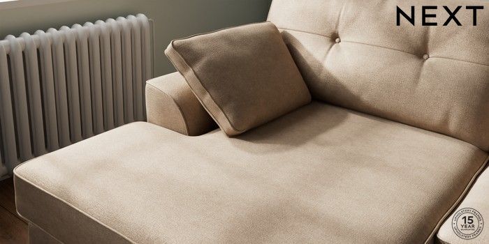 7.2.6 Buy Stamford Buttoned Back Large Sofa Chaise - Left Hand Luxe Chenille Mid Camel Beige Large Square Angle - Mid from the Laura Ashley online shop Click here to use our website with more accessibility support, for example screen readers