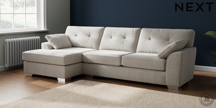7.2.6 Buy Stamford Buttoned Back Large Sofa Chaise - Left Hand Multi Weave Light Blue Large Square Angle - Chrome Metal from the Laura Ashley online shop Click here to use our website with more accessibility support, for example screen readers