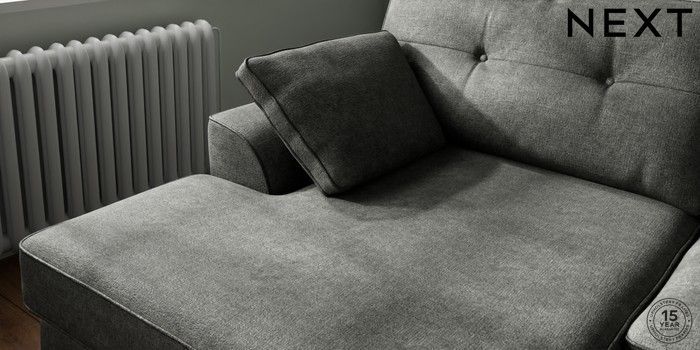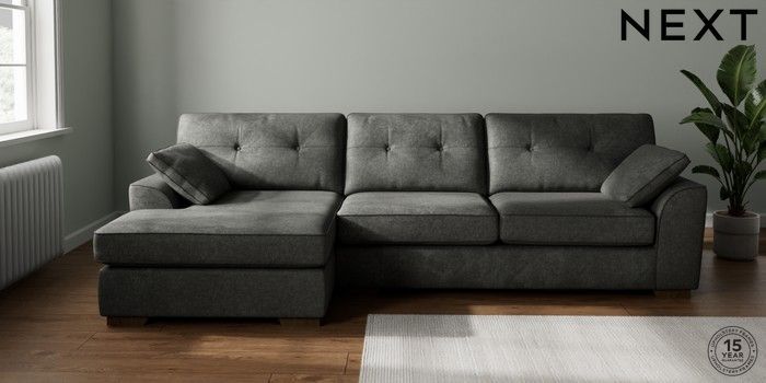 7.2.10 Buy Stamford Buttoned Back Large Sofa Chaise - Left Hand Plush Chenille Dark Grey Large Square Angle - Mid from the Laura Ashley online shop Click here to use our website with more accessibility support, for example screen readers